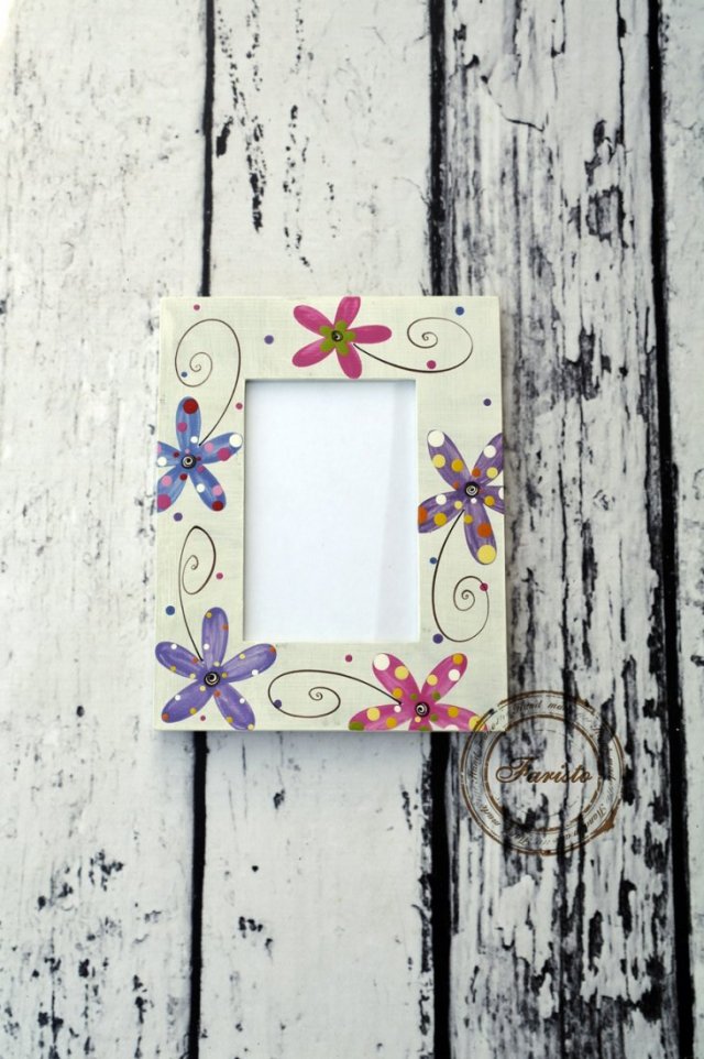 Ręcznie malowana farbami akrylowymi (ekologicznymi) drewniana ramka na zdjęcie.