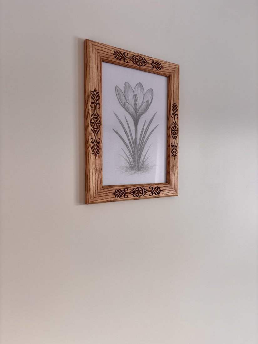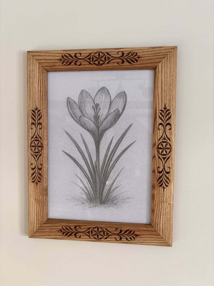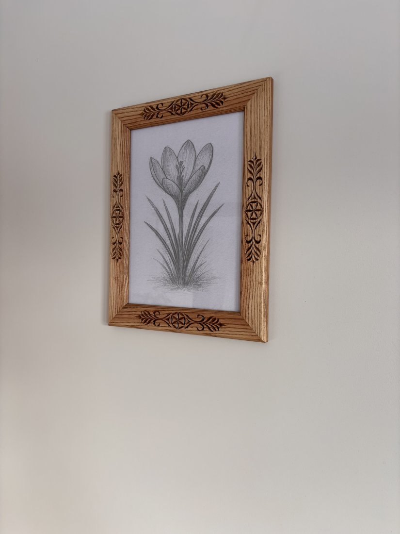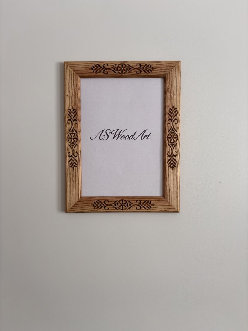 Oferuję ręcznie rzeźbioną ramkę z litego drewna jesionowego wykonaną tradycyjnymi technikami snycerskimi. Charakterystyczne zdobienia inspirowane stylem zakopiańskim, podhalańskim. Postarzane drewno jesionowe nadaje całości wyjątkową trwałość, wyrazisty rysunek słojów i elegancki, naturalny charakter. Ramka wykonana precyzyjnie z dbałością o każdy detal. Zastosowane drewno jesionowe jest gwarancją solidnego wykonania, tak więc jest to produkt dla pokoleń.