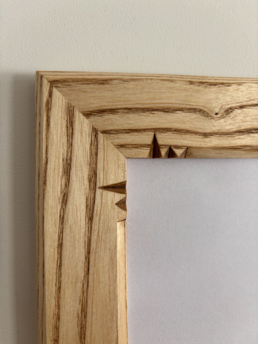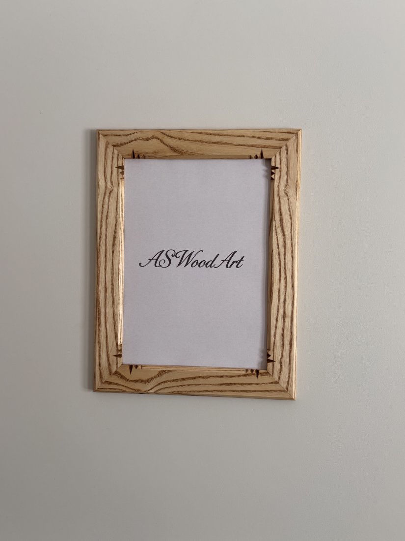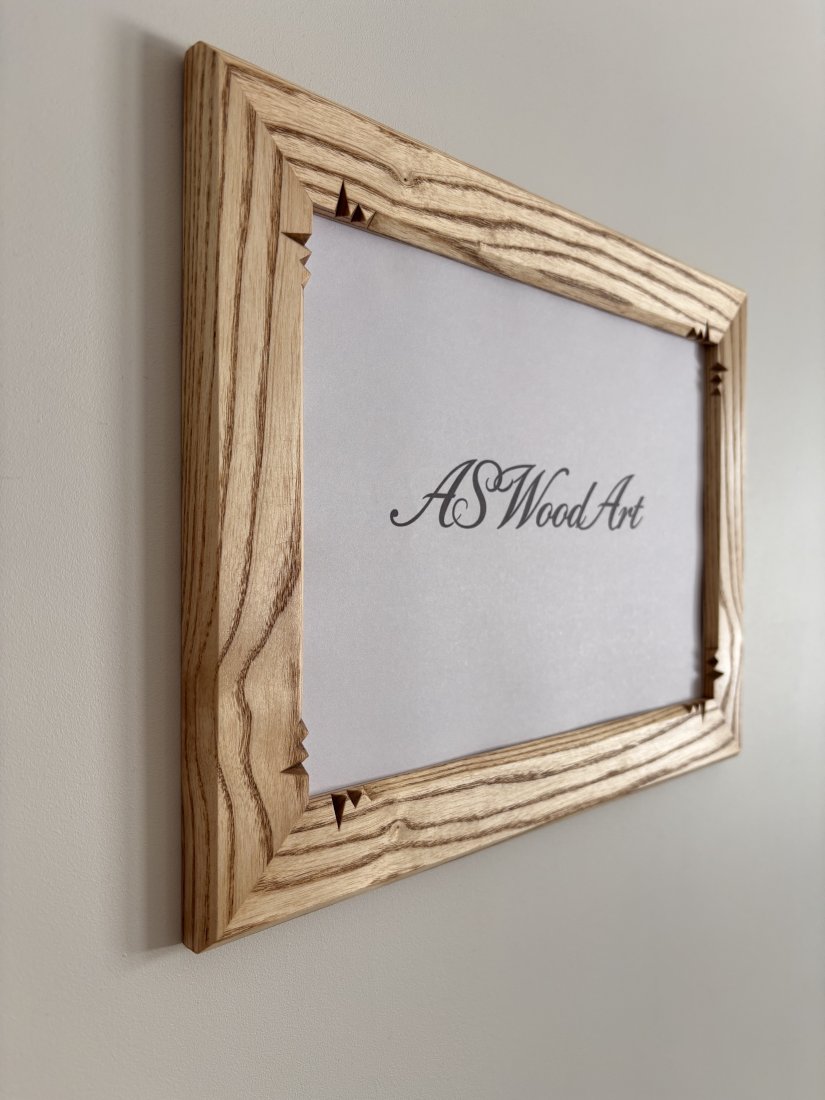 Oferuję ramkę z litego drewna jesionowego delikatnie zdobioną w narożnikach tradycyjnymi technikami snycerskimi. Postarzane drewno jesionowe nadaje całości wyjątkową trwałość, wyrazisty rysunek słojów i elegancki, naturalny charakter. Ramka wykonana precyzyjnie z dbałością o każdy detal. Zastosowane drewno jesionowe jest gwarancją solidnego wykonania, tak więc jest to produkt dla pokoleń.