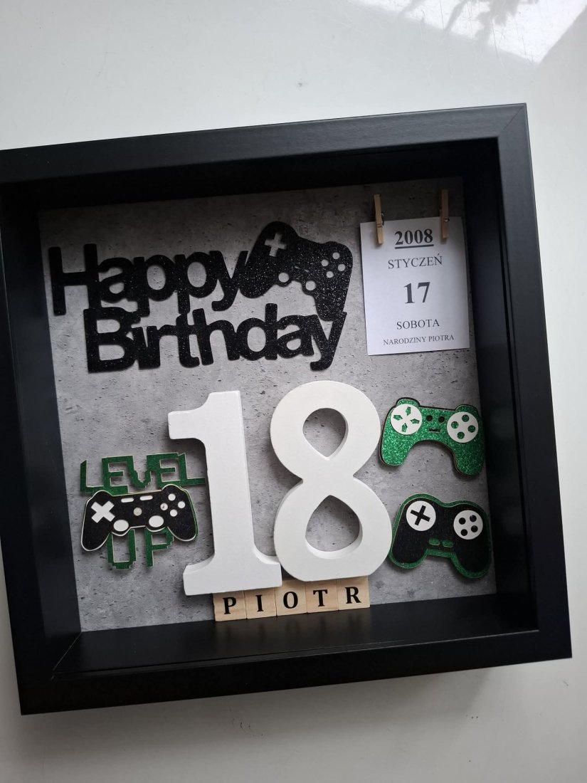 Ta personalizowana ramka to idealny prezent dla 18-latka, który kocha gry, konsole i klimaty gamingowe. Stylowa, nowoczesna i dopracowana w każdym detalu – zostaje z obdarowanym na lata, nie tylko na jeden dzień.
