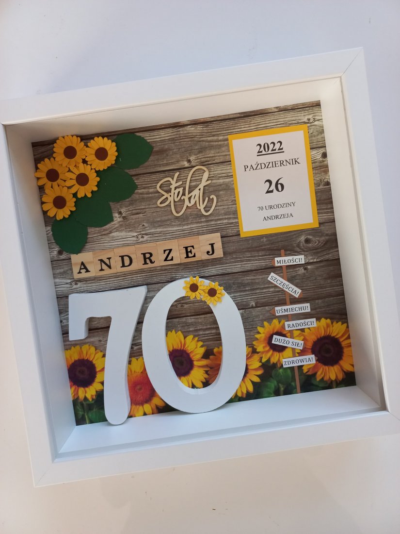 Ramka z okazji urodzin 30,40,50,60... (dowolne urodziny) z motywem słoneczników.