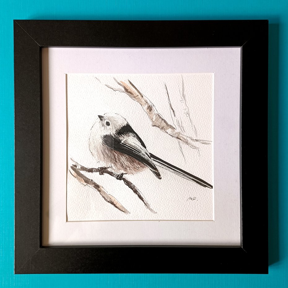 Raniuszek został wybrany ptakiem roku. Oryginalna unikatowa akwarela. Namalowana na papierze 300g, tuszami Derwent, z użyciem cienkopisów Gell Pen i Posca. Akwarela oprawiona jest w ramę z MDF w kolorze czarnym, w passe-partou za szkłem. Obrazek przeznaczony jest do powieszenia. Wymiary całości 24,3cm x 24,3 cm, okienko passe-partou 13,7cm x13,7cm. Jedyny taki egzemplarz. Sygnowany inicjałami, z tyłu podpis. Gotowy prezent! Zapraszam!