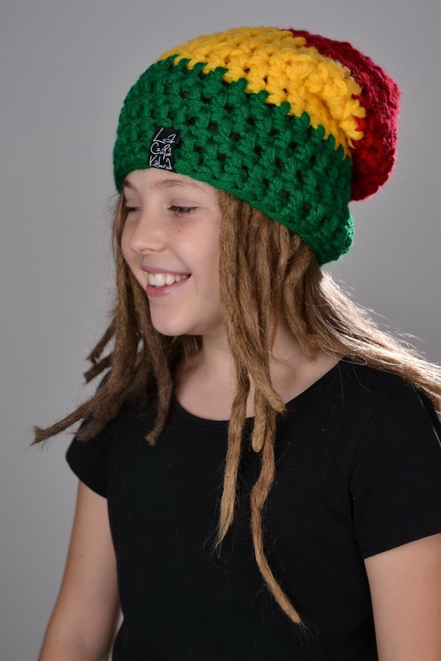 Model Rasta - czapka długa, grubo tkana, z kolorami Rasta. Mięsista i ażurowa :) Z najwyższej jakości włóczki.