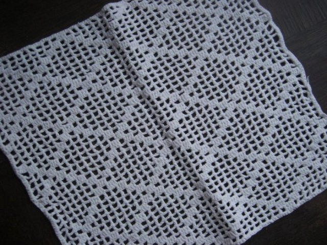 Biala recznie robiona serweta. 30 x 26 cm; przekatna 40 cm. Stan zachowania bardzo dobry.