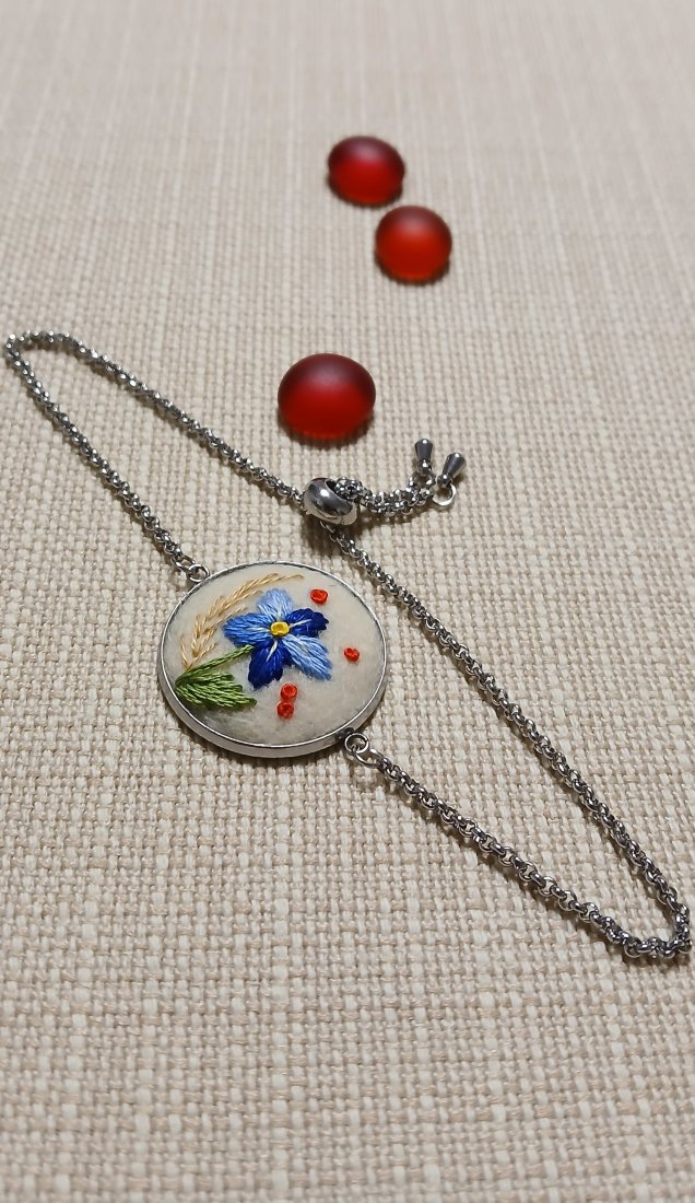 Tagi: #boho biżuteria, #haft płaski, #na filcu, #stal szlachetna