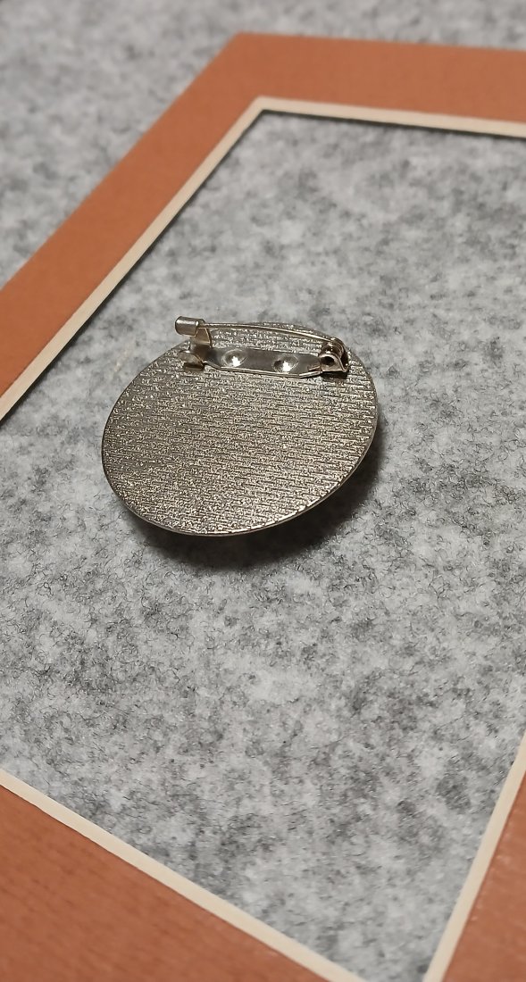 Baza to stop cynku i aluminium w kolorze srebra. Broszka jest lekka, nie odbarwia, nie zmienia swojego koloru z biegiem czasu.