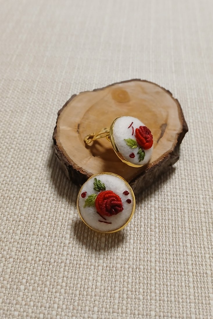 Perfekcyjnie dopracowany haft na filcu wykonałam polską bawełnianą muliną za pomocą igły. Jest on zabezpieczony impregnatem do tkanin ale po dłuższym użytkowaniu można go odświeżyć przy pomocy delikatnego mydła i letniej wody.