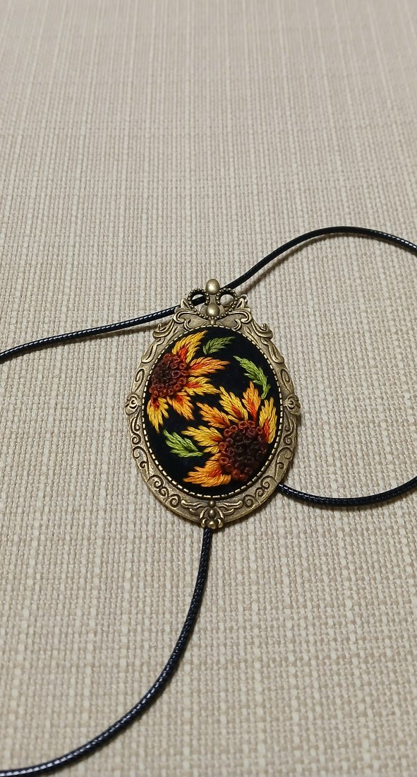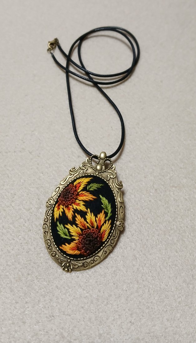 Tagi: #boho biżuteria, #broszko-wisior, #haft płaski, #na filcu