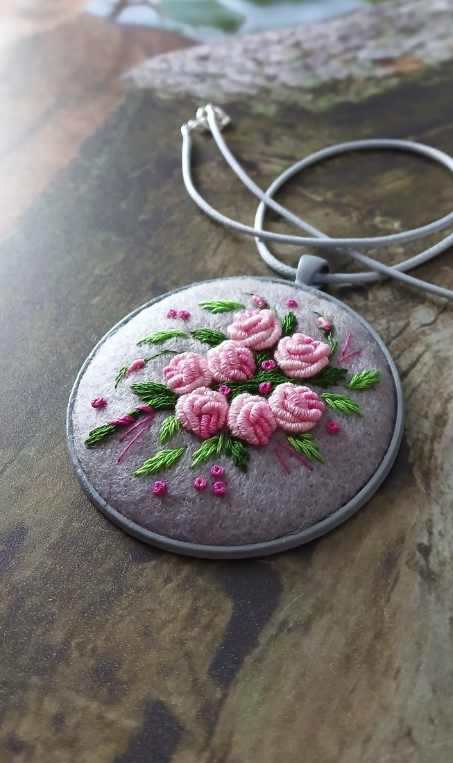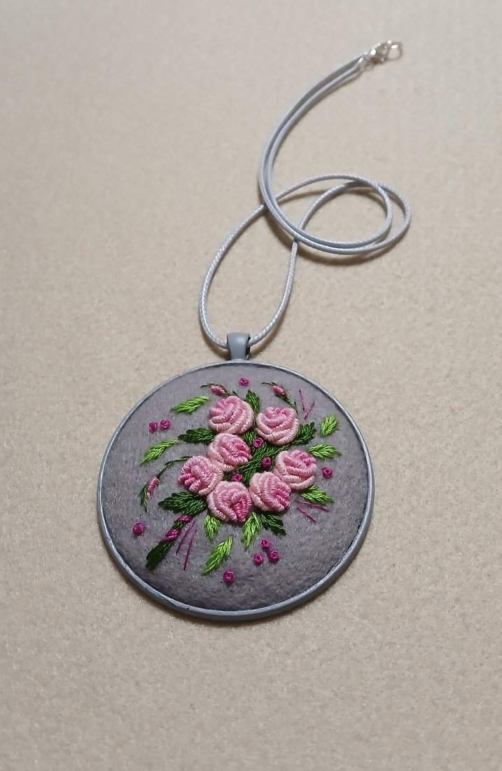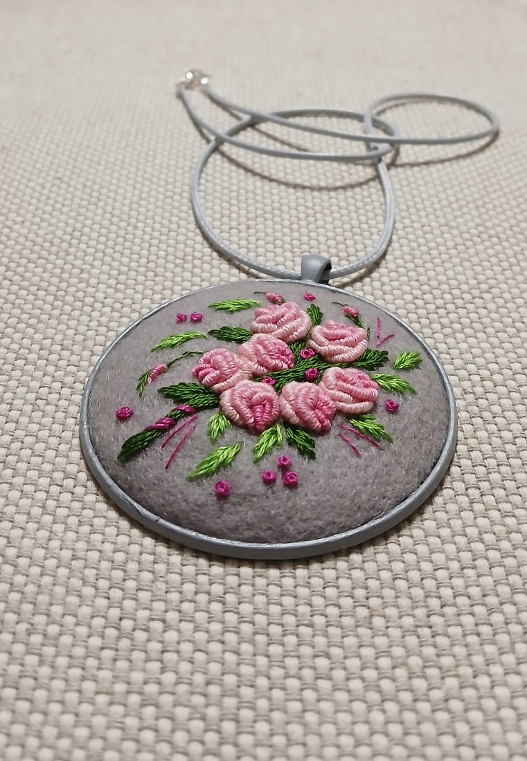 Bukiet różowych róż na lodowej szarości to romantyczne zestawienie kolorów w stylowym ogromnym wisiorze.