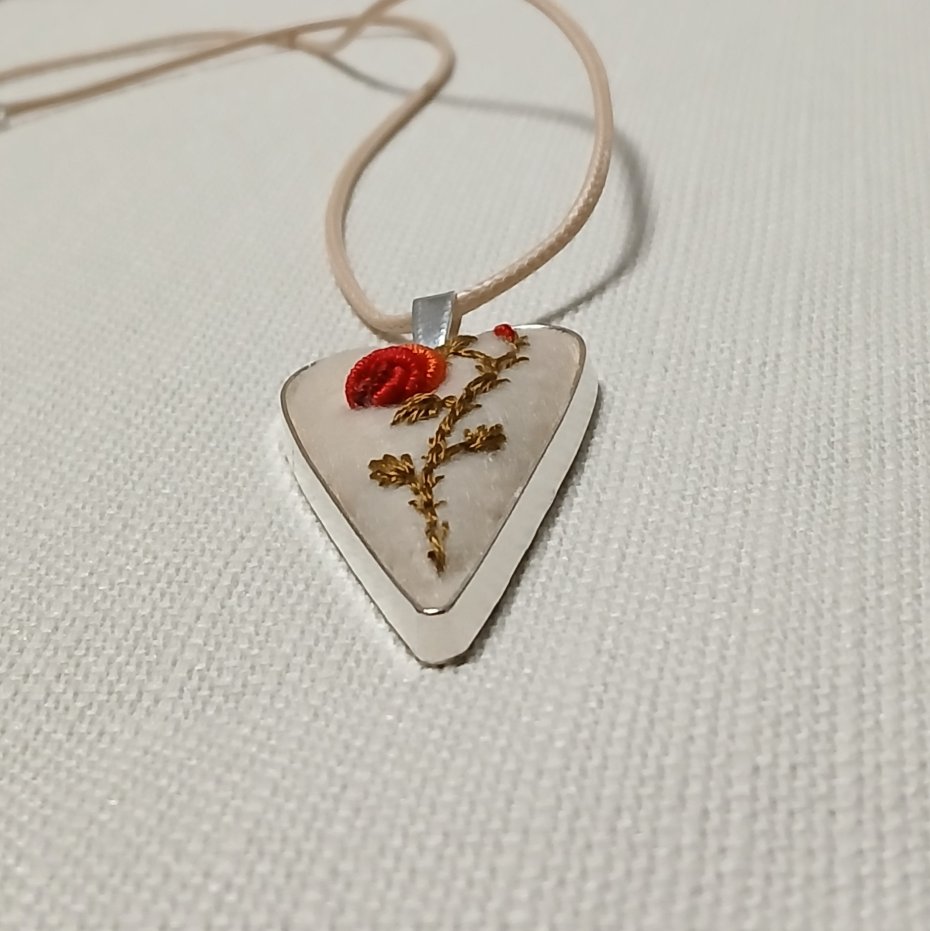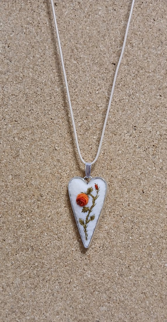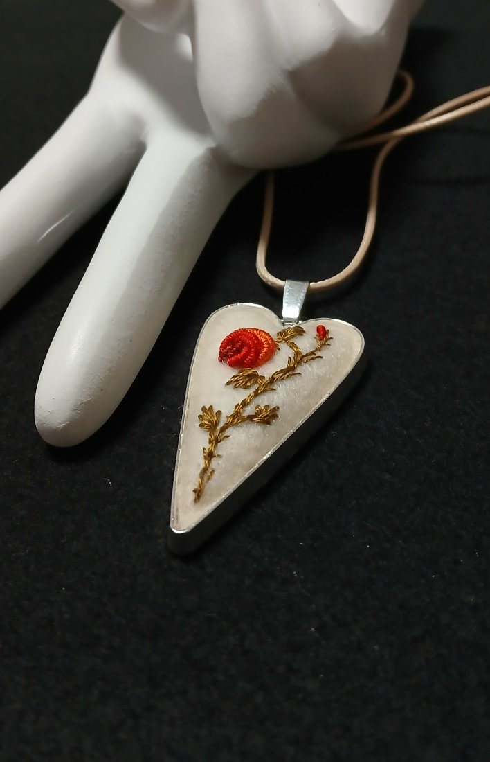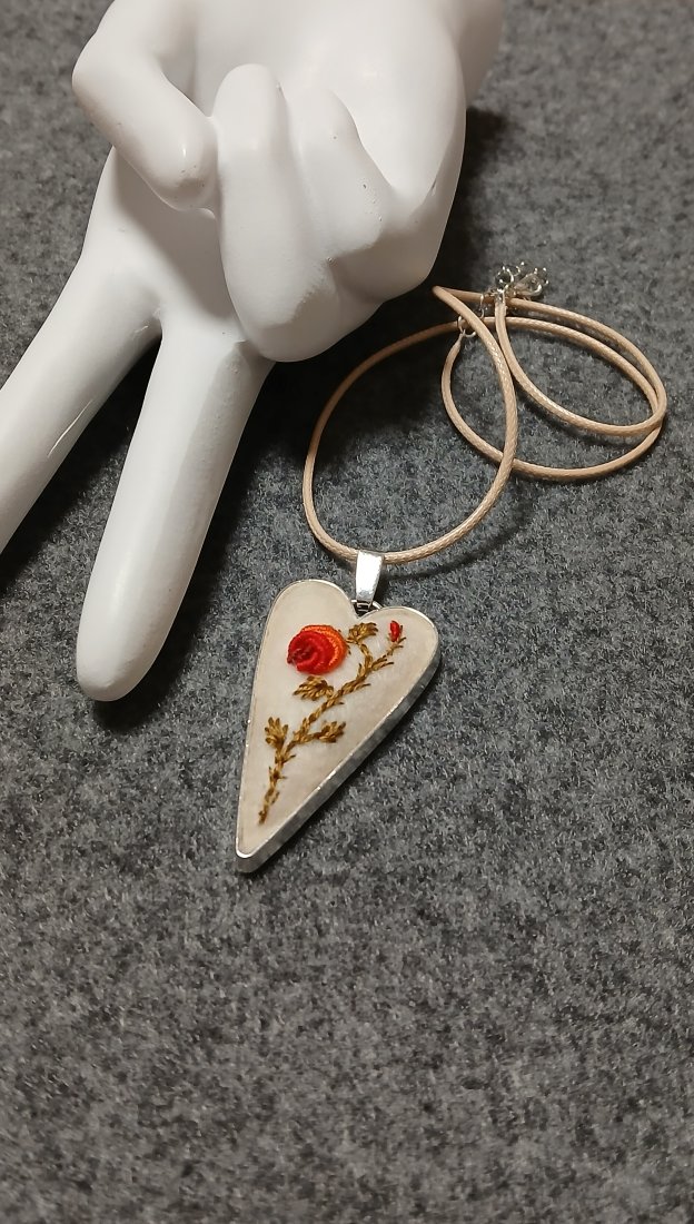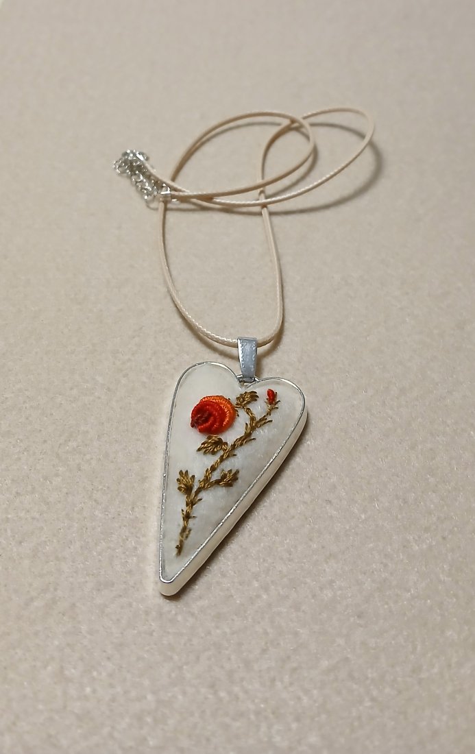 Jesienna róża na ecru tle w spektakularnym sercu to biżuteria dla pan, które lubią się wyróżniać. Niepowtarzalny klimat tego wisiorka sprawi że poczujesz się wyjątkowo czy to na spotkaniu biznesowym czy też na romantycznej randce.