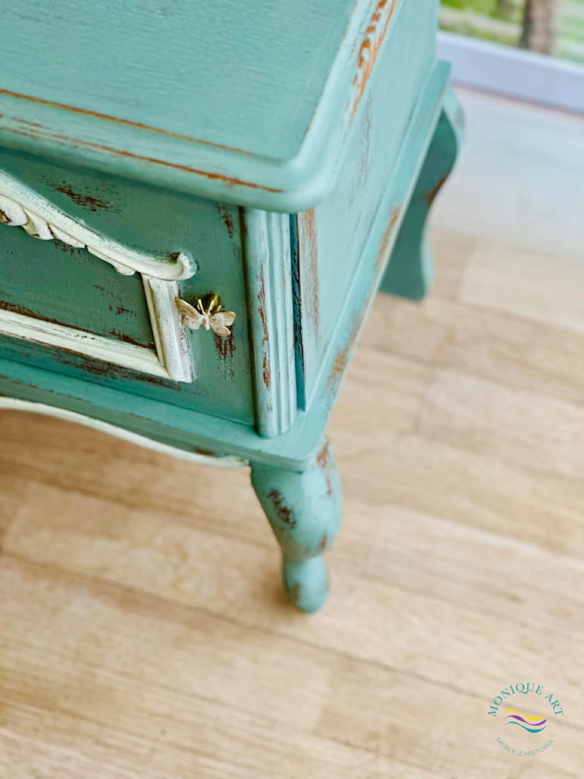 Ta metamorfoza szafki (kupiłam używaną) nie powstała w fabryce, lecz w ciszy mojej pracowni, z miłości do piękna i autentyczności.