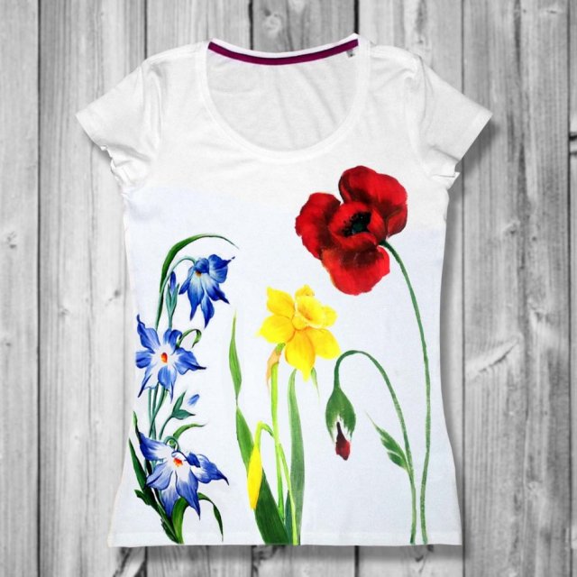 Tagi: #bawełniana bluzka, #prezent świąteczny, #ręcznie malowana, #w kwiaty