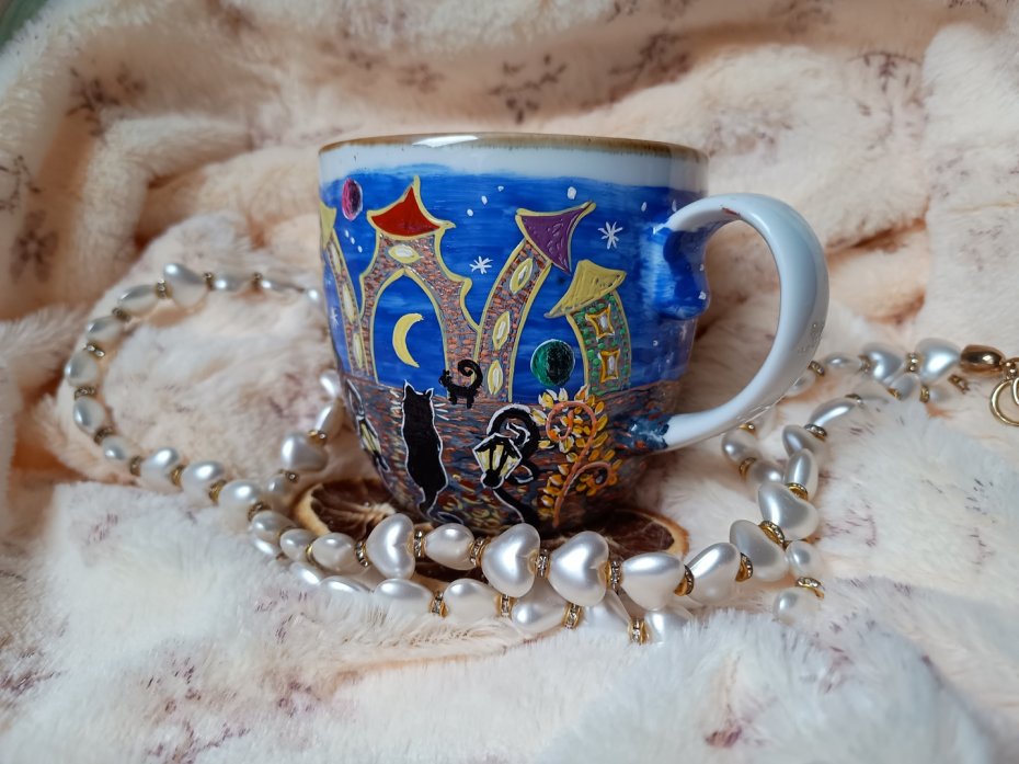 Wyjątkowe i niepowtarzalne rękodzieło, unikalne motywy, malowane z sercem i pasją pełne ekspresji i emocji. Nie jest to masowa produkcja, każdy kubek i komplet są wynikiem głębokiej wrażliwości, wszystkie kubki i komplety malowane są w przypływie weny z wielką radością i zamiłowaniem :)