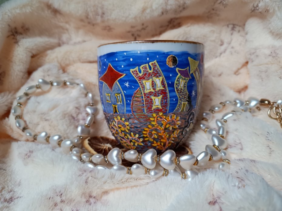 Kubek malowany wiele godzin z wielką troską o wszelkie szczegóły z miłości do natury, z miłości do tego co piękne i ulotne..