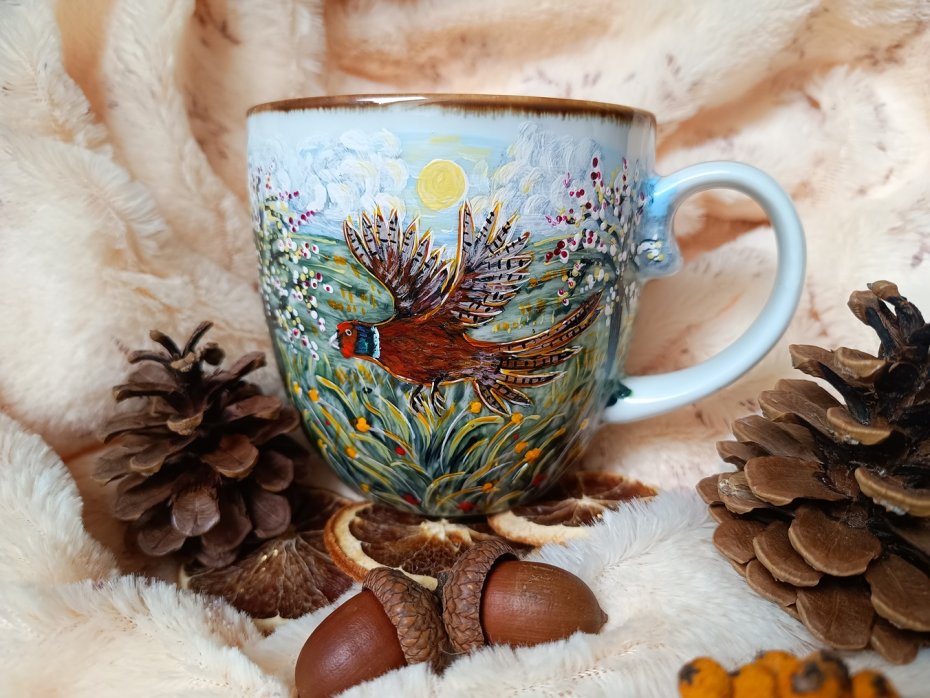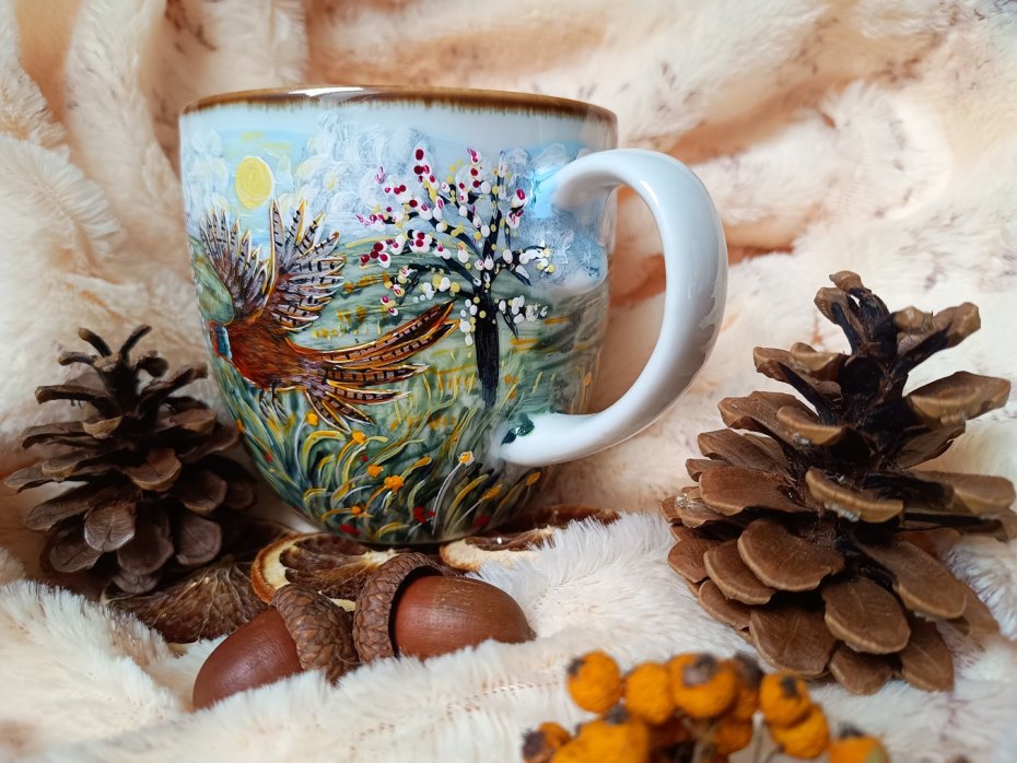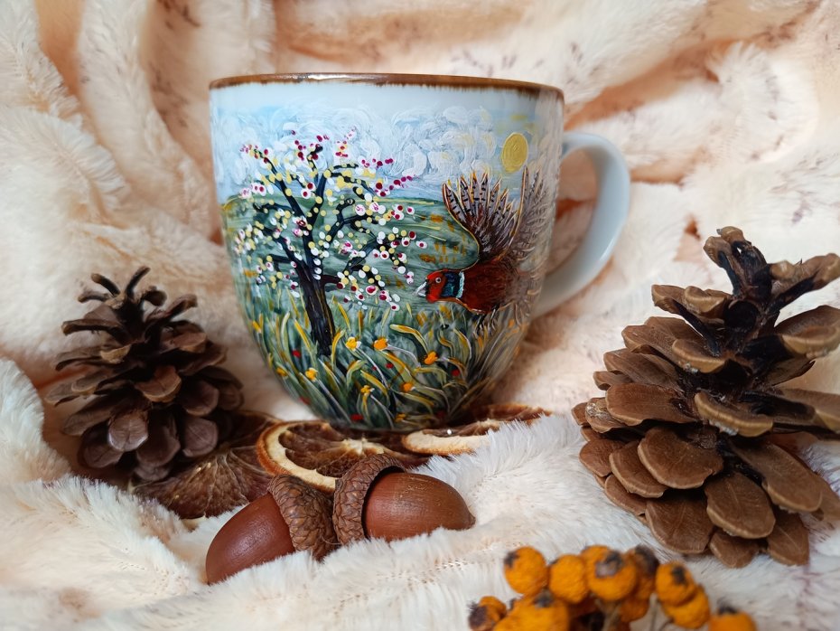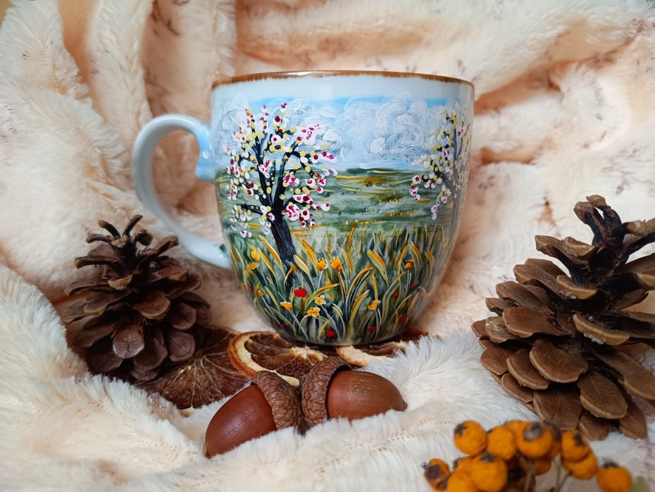 Kubek malowany wiele godzin z wielką troską o wszelkie szczegóły z miłości do natury, z miłości do tego co piękne i ulotne..