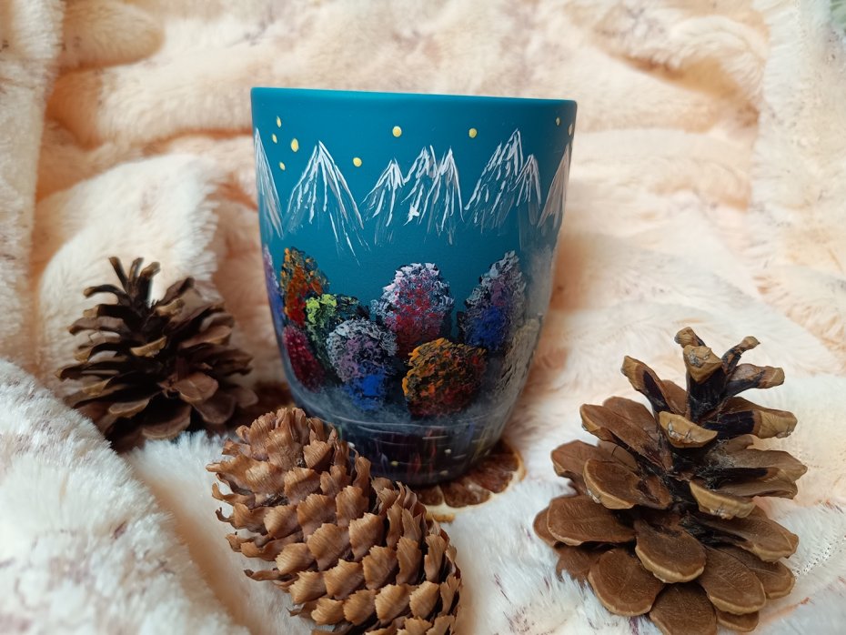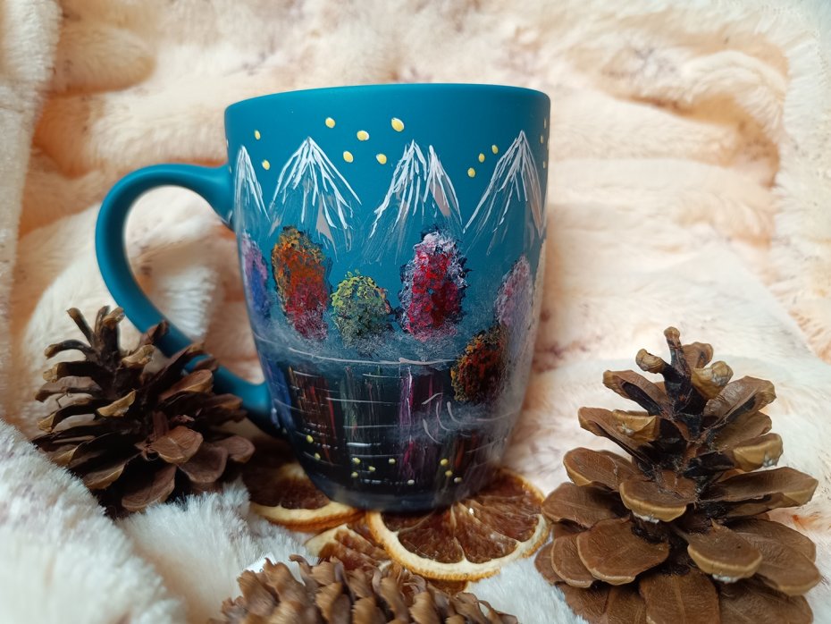 Kubek malowany wiele godzin z wielką troską o wszelkie szczegóły z miłości do natury, z miłości do tego co piękne i ulotne..