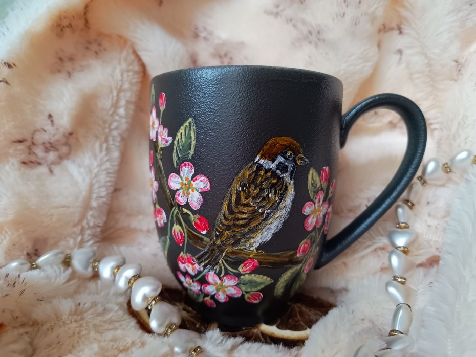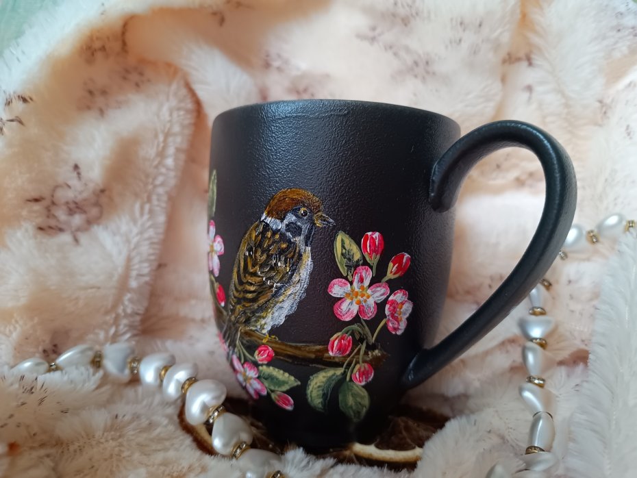 Kubek malowany wiele godzin z wielką troską o wszelkie szczegóły z miłości do natury, z miłości do tego co piękne i ulotne..