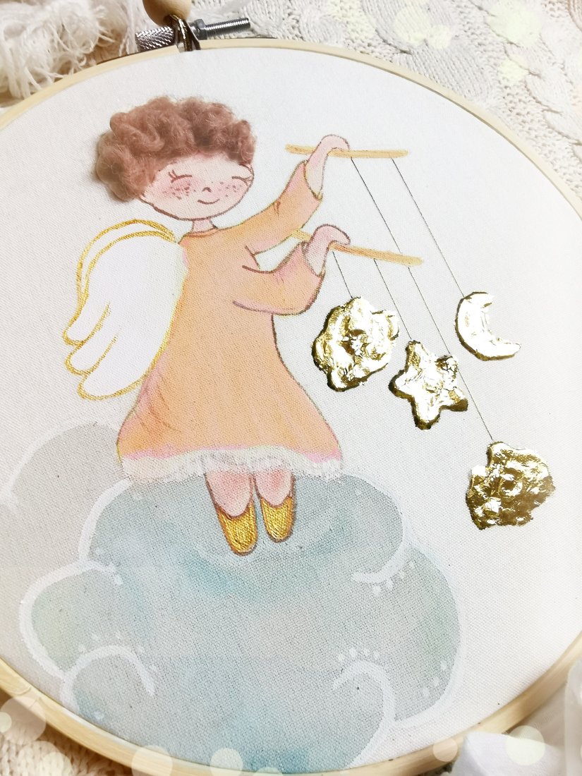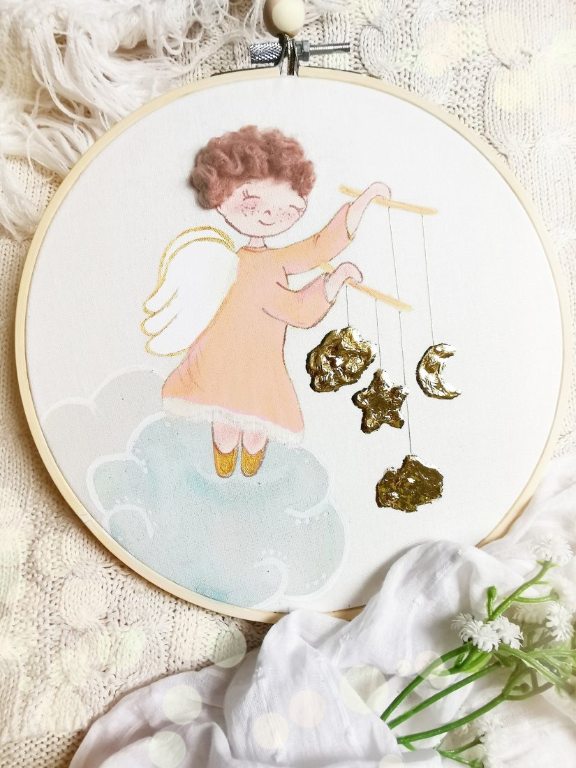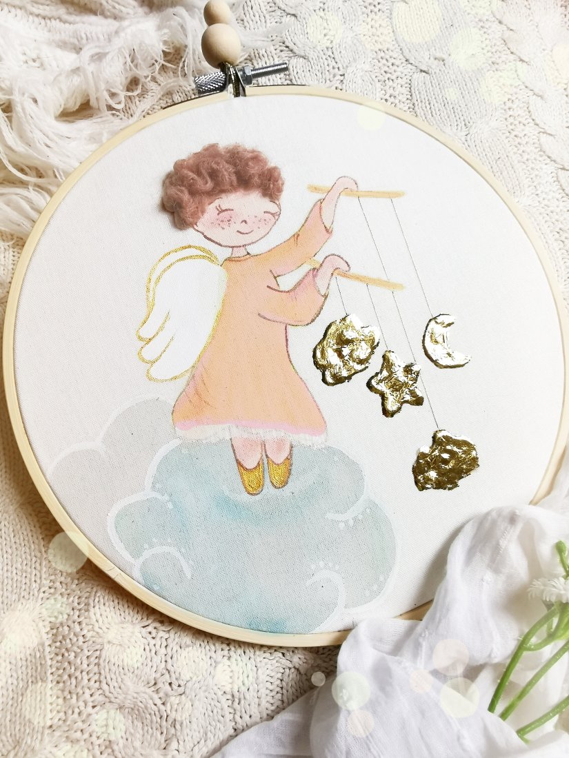 Efekt 3D tworzą włoski aniołka.