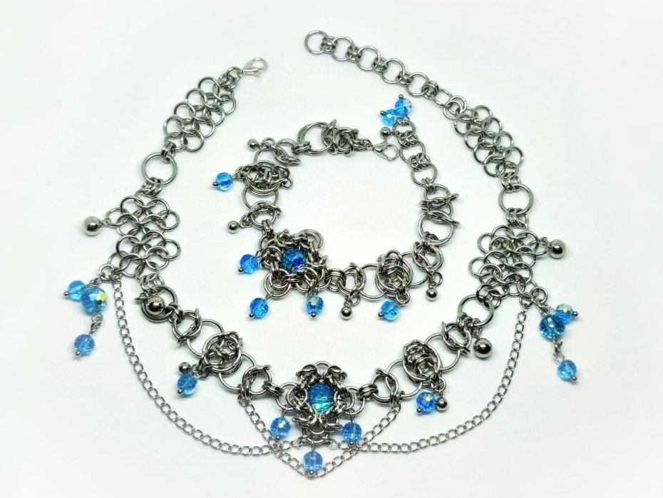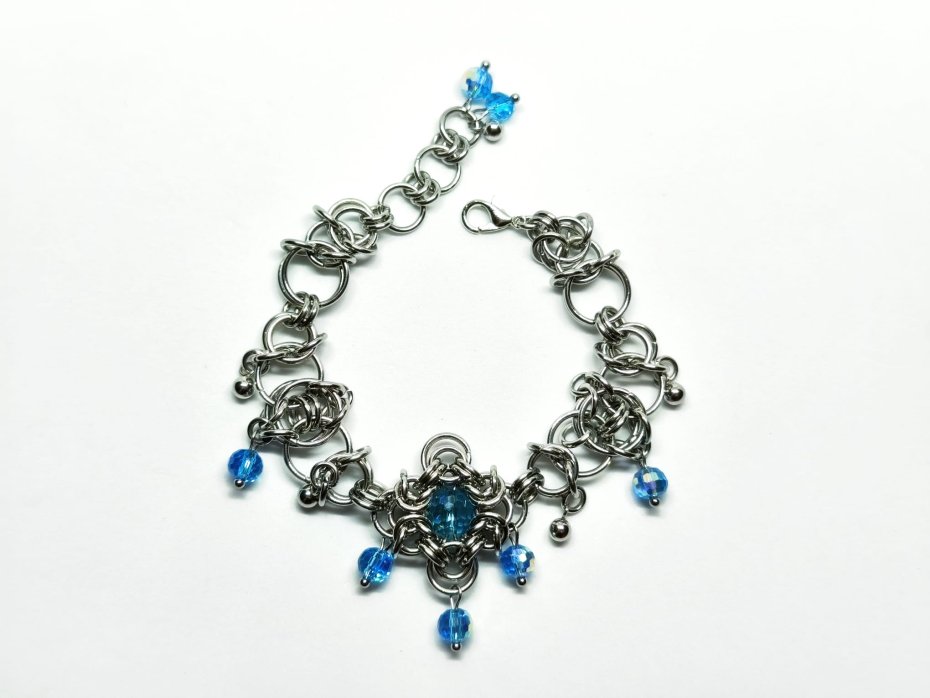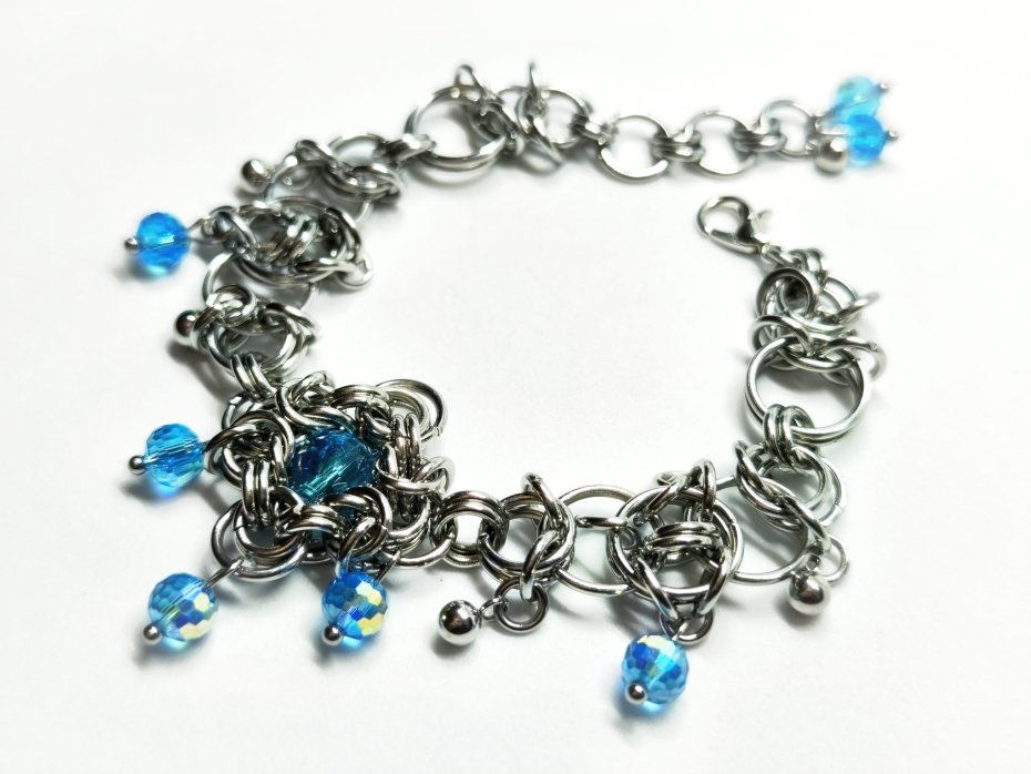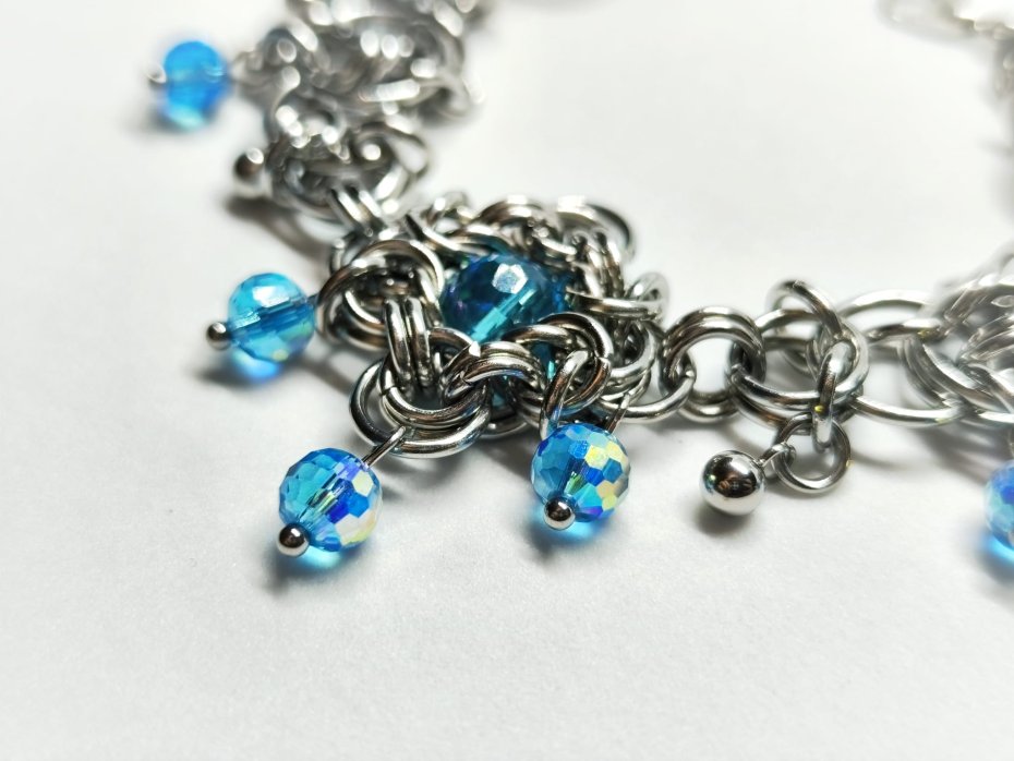 bransoletka chainmaille, bransoletka z kryształkami, bransoletka niebieska, bransoletka stal chirurgiczna, bransoletka hipoalergiczna, bransoletka elficka, bransoletka fantasy, bransoletka gothic, bransoletka rękodzieło, bransoletka z koralikami, bransoletka custom, bransoletka na nadgarstek, bransoletka błyszcząca, biżuteria stalowa, biżuteria z kryształami czeskimi, prezent dla niej, prezent fantasy, prezent elficki