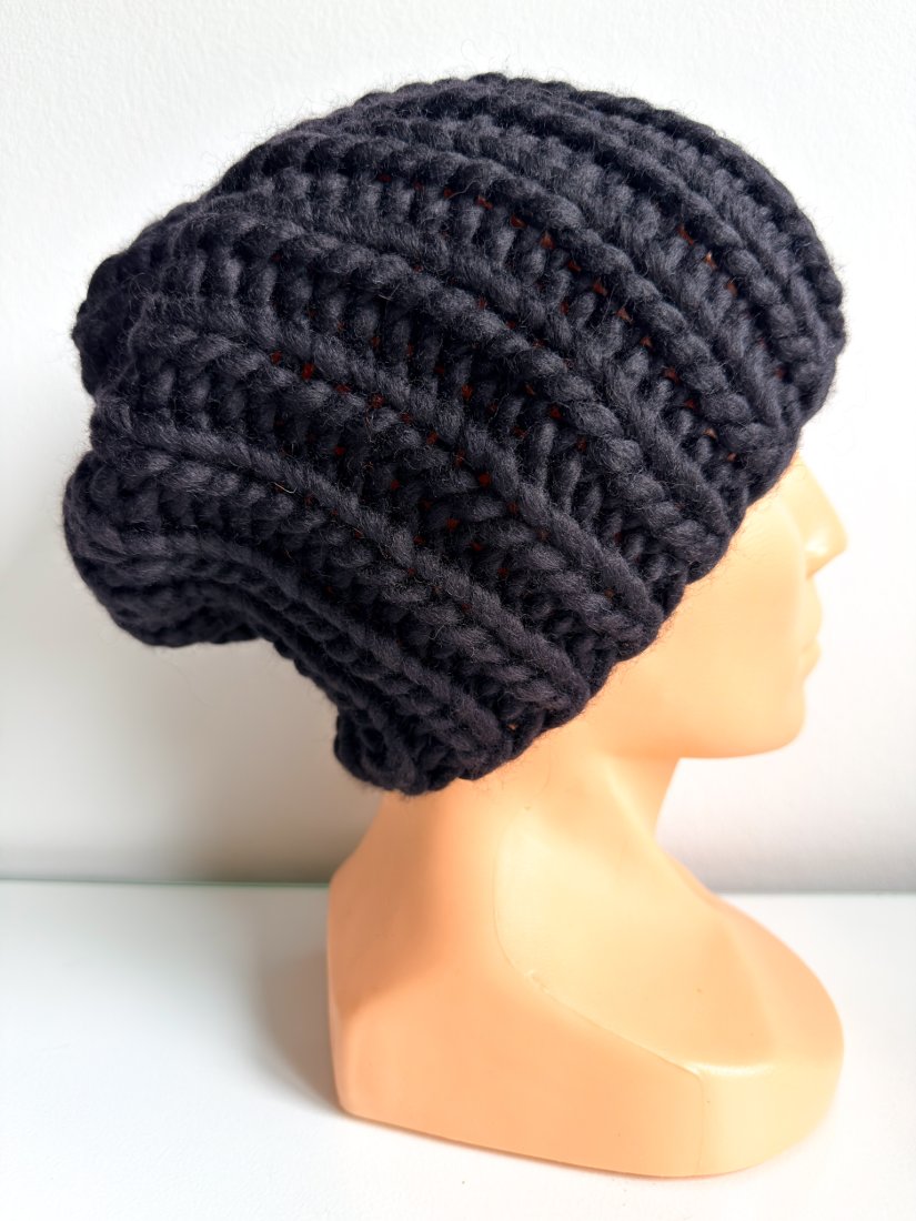 4.  > Ręcznie robiona czapka damska ASHER 100% Wełna owcza 02 Czarny - od ręki (nr 7084946)