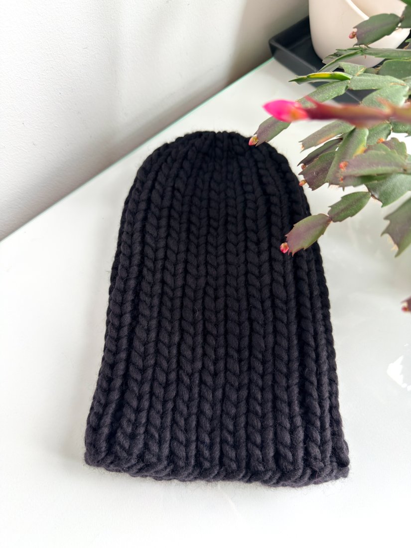 RĘCZNIE ROBIONA CZAPKA DAMSKA ASHER 100% WEŁNA OWCZA 02 CZARNY - OD RĘKI
