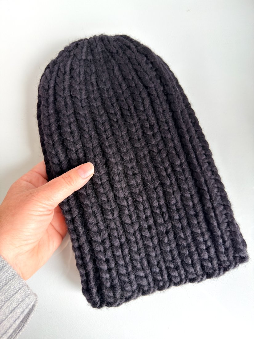 Duża, ciepła czapka ręcznie robiona na drutach. Idealna jako czapka zimowa. Gruba, solidna, ale delikatna i miła. Jeśli szukasz subtelniejszej wersji, postaw na czapki 100% merino.