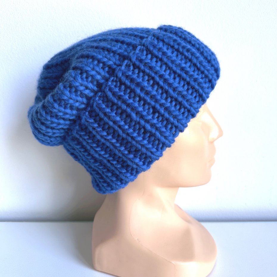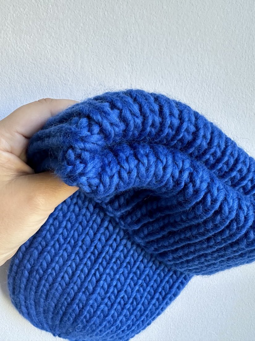 Duża, ciepła czapka ręcznie robiona na drutach. Idealna jako czapka zimowa. Gruba, solidna, ale delikatna i miła. Jeśli szukasz subtelniejszej wersji, postaw na czapki 100% merino.
