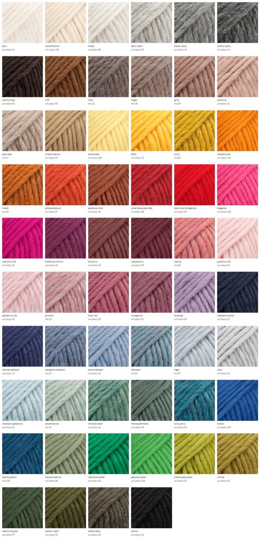 Uwaga! W zależności od ustawień monitora kolor może się nieznacznie różnić od rzeczywistego, tak samo kolory poszczególnych motków mogą nieznacznie różnić się od siebie.