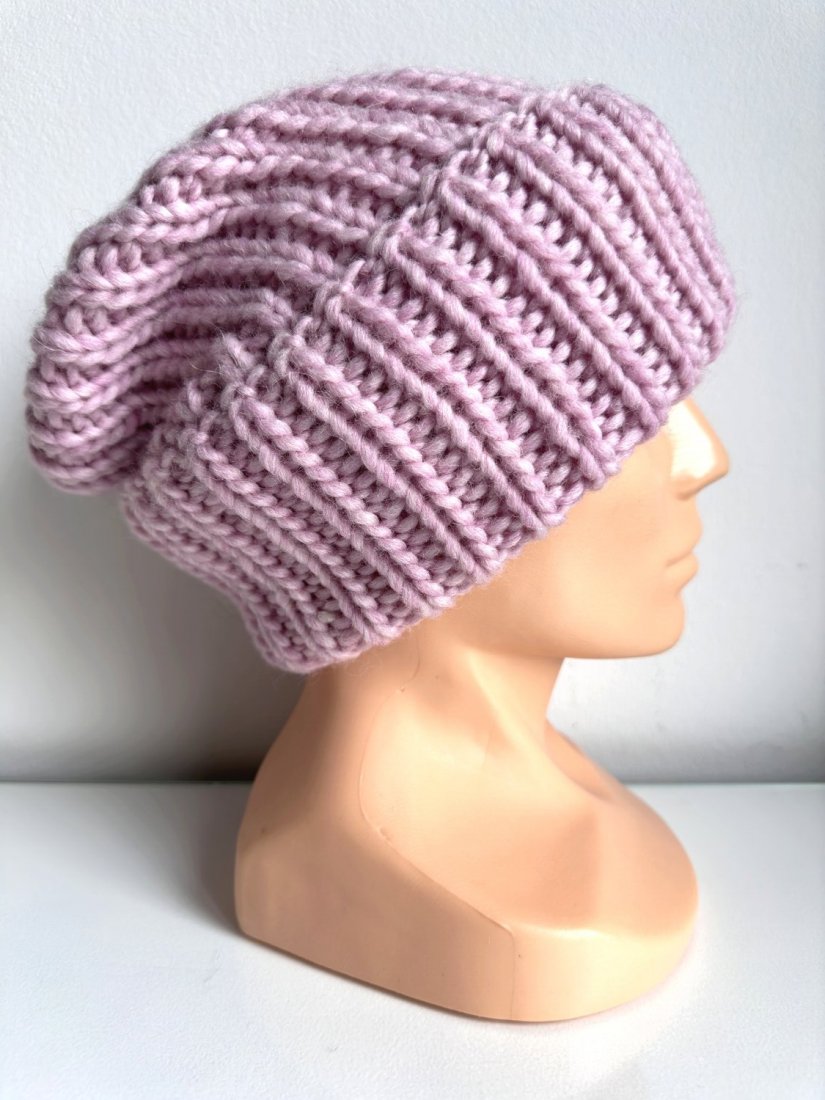 Duża, ciepła czapka ręcznie robiona na drutach. Idealna jako czapka zimowa. Gruba, solidna, ale delikatna i miła. Jeśli szukasz subtelniejszej wersji, postaw na czapki 100% merino.