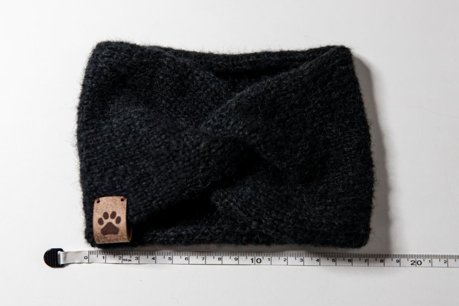 Opaska jest wykonana przeze mnie na drutach z włóczki Air Drops o składzie z metki: 65% Alpaca, 28% Polyamide. 7% Wool.