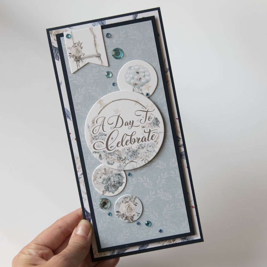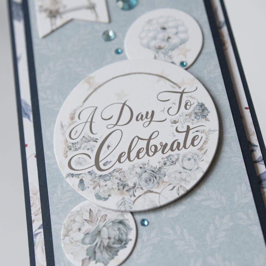 Ręcznie robiona kartka ślubna w odcieniach granatu z napisami w języku angielskim