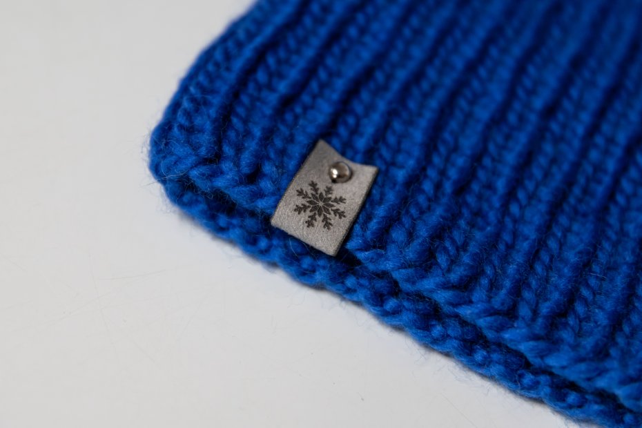 Do czapki załączona jest szara metka z motywem śnieżynki przymocowana na nit. W razie potrzeby można ją odkręcić.
