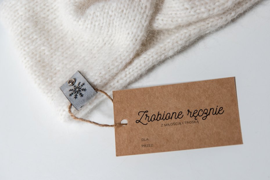 Do opaski załączam papierową metkę z napisem "Zrobione ręcznie".