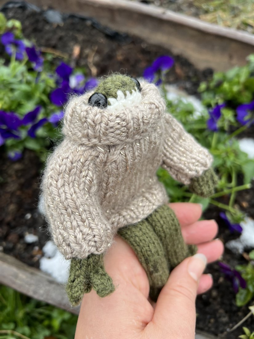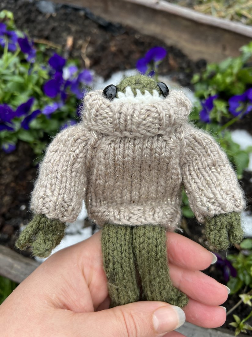 Została wykonana ręcznie z miękkiej włóczki, a jej błyszczący, przytulny sweterek dodaje jej wyjątkowego uroku. Żabka kocha zimowe dni, drobne przygody i wnoszenie odrobiny radości w każde miejsce. Idealnie nada się na biurko, półkę lub jako słodki prezent dla kogoś, kto lubi wyjątkowe rękodzieło.