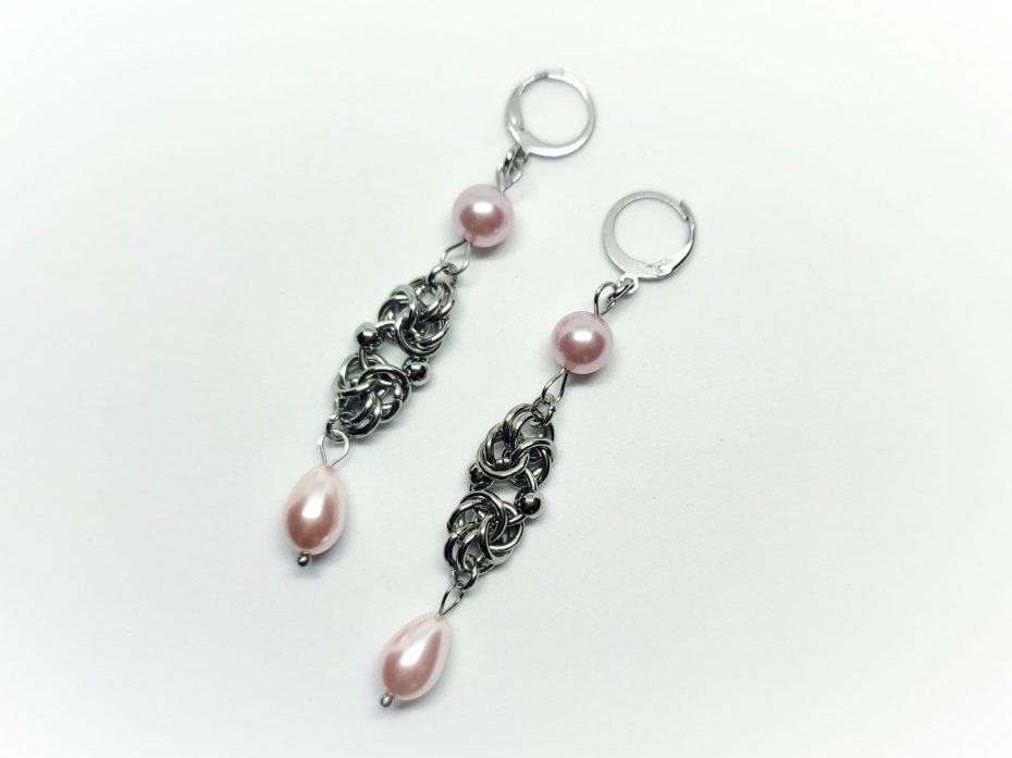 ???? 2 szklanymi, perłowymi koralikami w delikatnym odcieniu różu