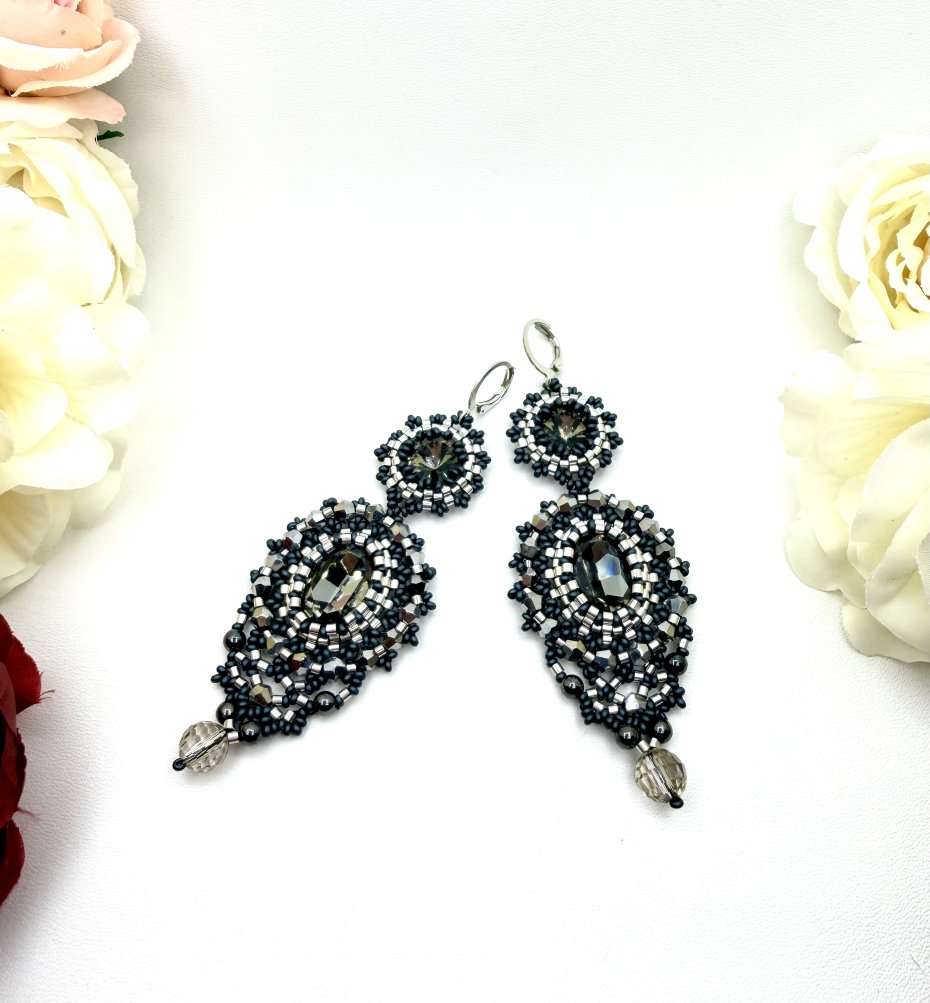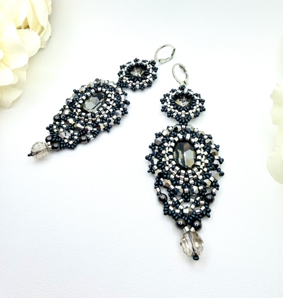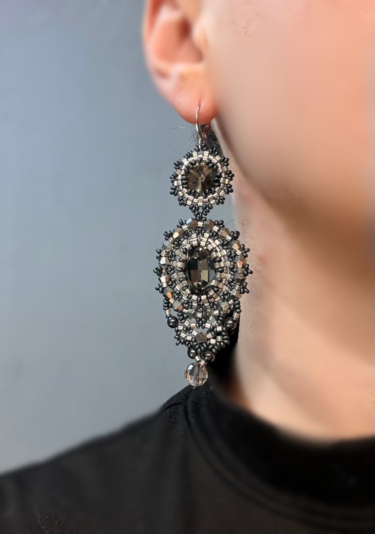 Eleganckie, ręcznie wykonane kolczyki w odcieniach ciemnej szarości i grafitu.