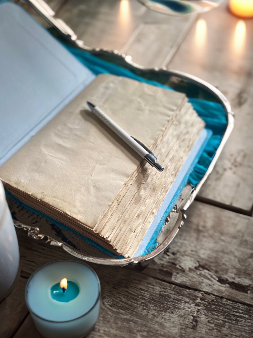 Tworzona od podstaw począwszy od własnoręcznie robionej okładki do ręcznie postarzanych i wszywanych kartek.