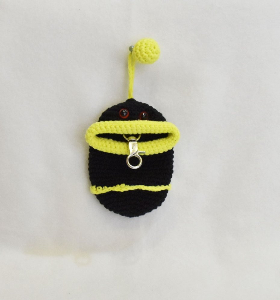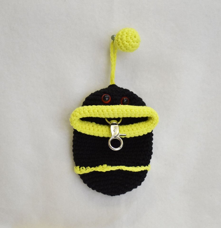Ręcznie wykonany breloczek pełniący funkcję praktycznego schowka na klucze. Miękka, szydełkowa forma skutecznie chroni klucze przed zarysowaniami i hałasem w torebce lub plecaku. Otwierany schowek z metalowym karabińczykiem pozwala bezpiecznie przypiąć klucze w środku, a całość można wygodnie przypiąć do torby, paska lub plecaka. Wyraziste kolory i charakterystyczny wygląd sprawiają, że breloczek jest nie tylko praktyczny, ale też stanowi oryginalny dodatek.