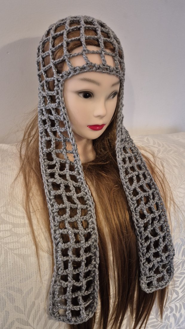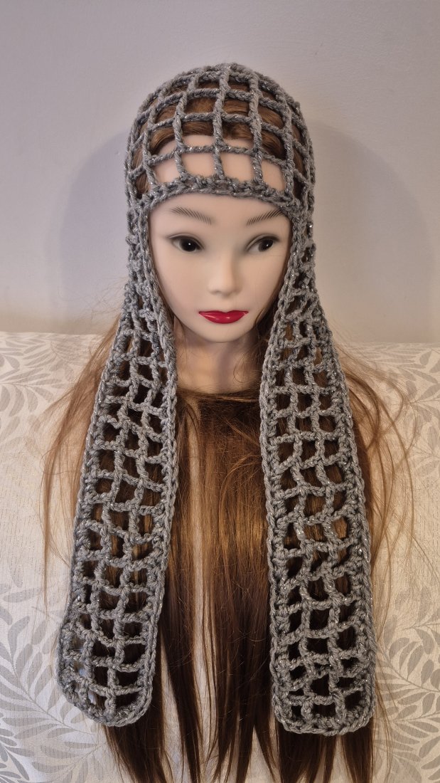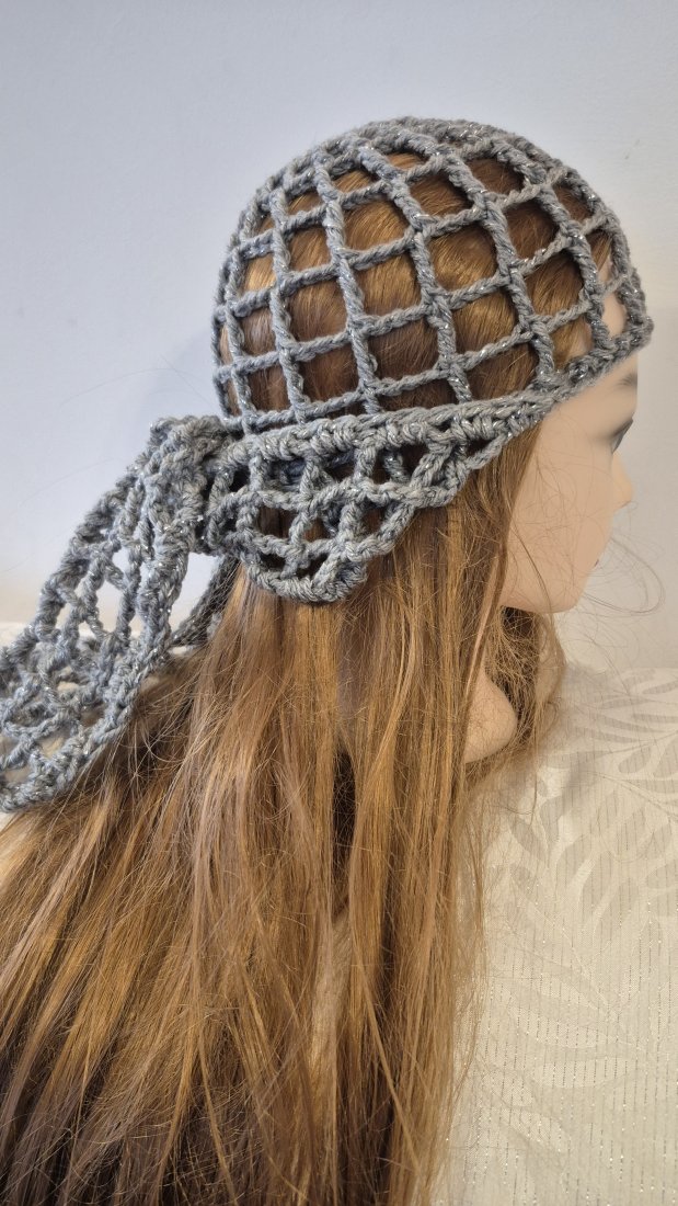 Na sprzedaż oferuję wyjątkowy, ręcznie wykonany czepiec o strukturze siatki (mesh) w kolorze szarym ze srebrną nitką. To absolutny must-have dla osób, które szukają niebanalnych dodatków i chcą wyróżnić się z tłumu.