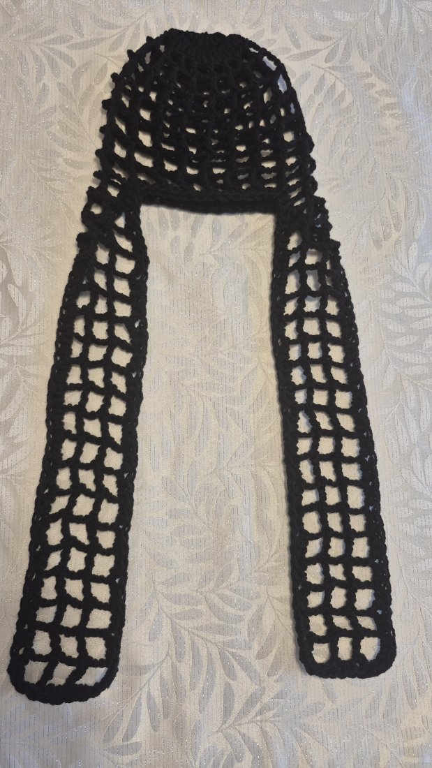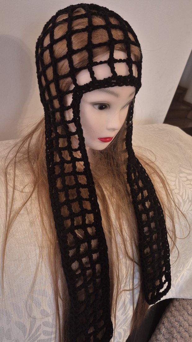 Na sprzedaż oferuję wyjątkowy, ręcznie wykonany czepiec o strukturze siatki (mesh) w kolorze głębokiej czerni. To absolutny must-have dla osób, które szukają niebanalnych dodatków i chcą wyróżnić się z tłumu.