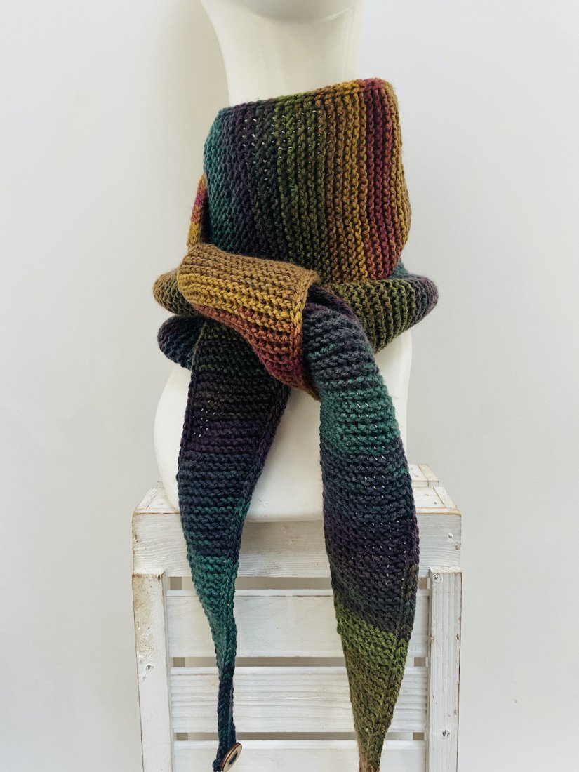 Szalik ma 210 cm długości oraz 21 cm w najszerszym miejscu, co nadaje mu charakterystyczny kształt szala w stylu skandynawskim. Można nim podwójnie owinąć szyję i zawiązać.