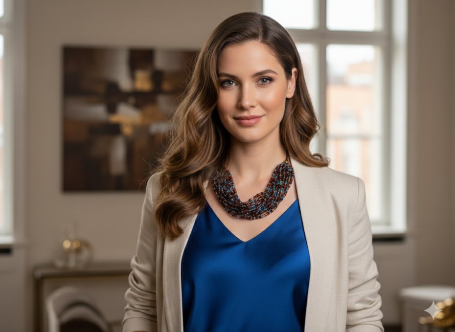 Bogata kolorystyka: Harmonijne połączenie głębokich odcieni brązu, miedzi i ożywczego błękitu sprawia, że naszyjnik przyciąga wzrok i pasuje do wielu karnacji.