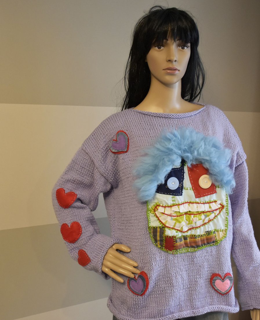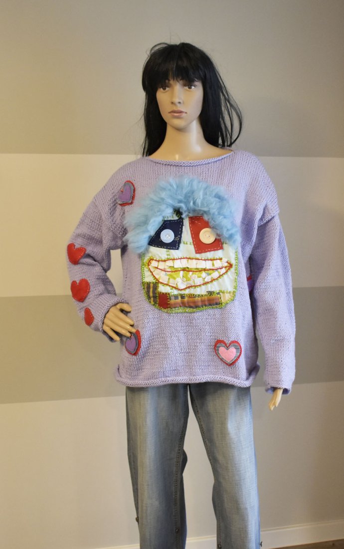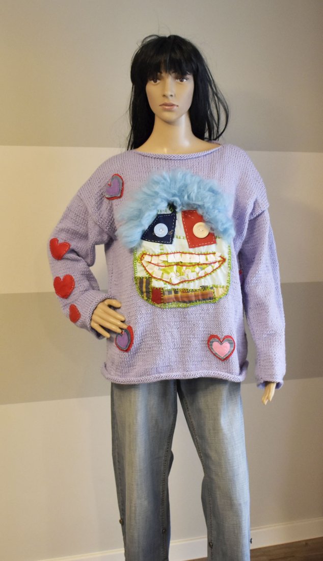 Niepowtarzalny, ręcznie robiony sweter z wyjątkowymi aplikacjami w stylu art fashion.