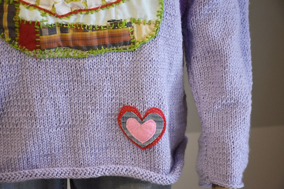 Ręcznie robiony sweter z artystycznymi aplikacjami - unikatowy upcycling