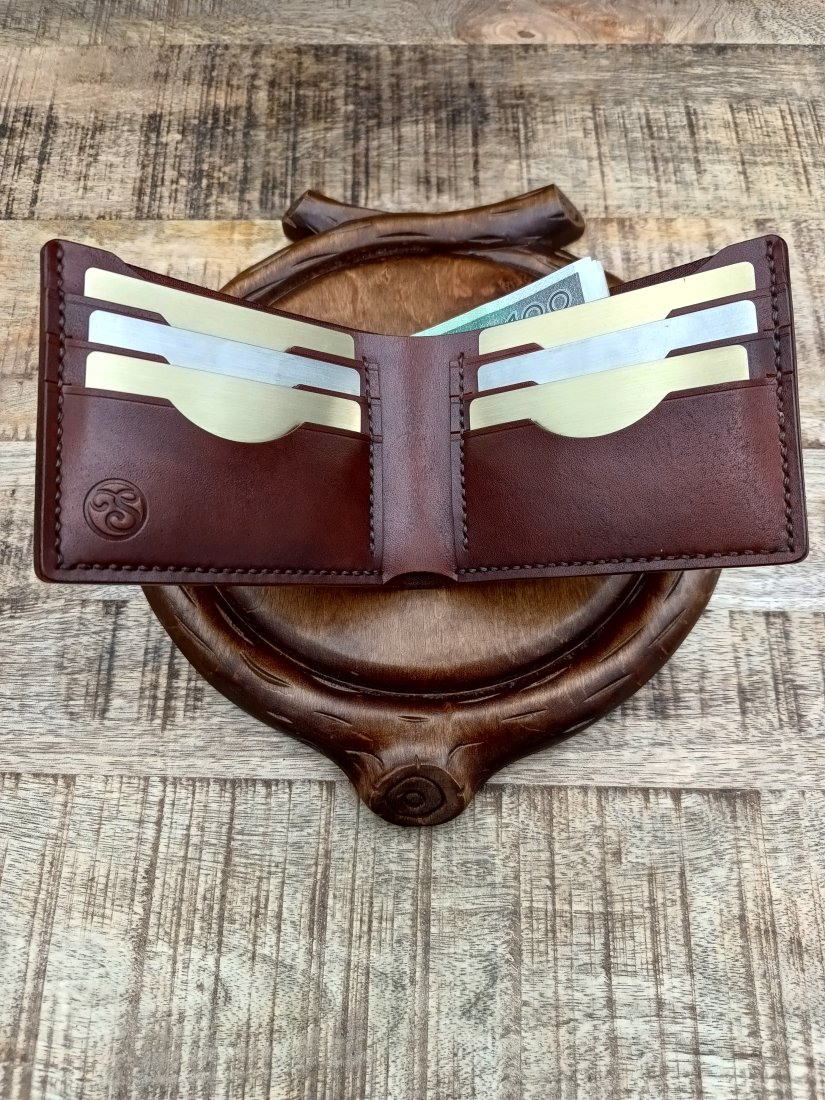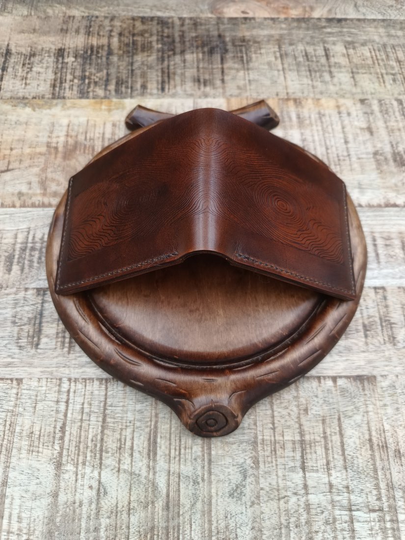 Jest to produkt ręcznie farbowany, zszywany i ręcznie wykończony. Podobnie jak drewno i inne materiały naturalne, skóra garbowana roślinnie ma swój unikatowy charakter. Każdy portfel jest nieco inny, co jest cechą produktu, nie wadą. Portfele powstają w bardzo małych seriach, nie jest to produkt fast fashion.