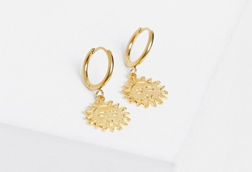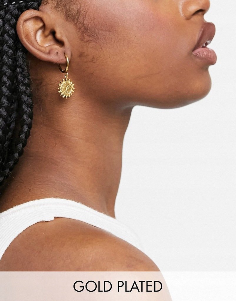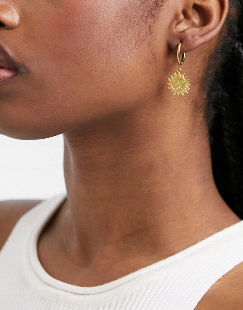 Pozłacane kolczyki w kształcie słońca, nowe.