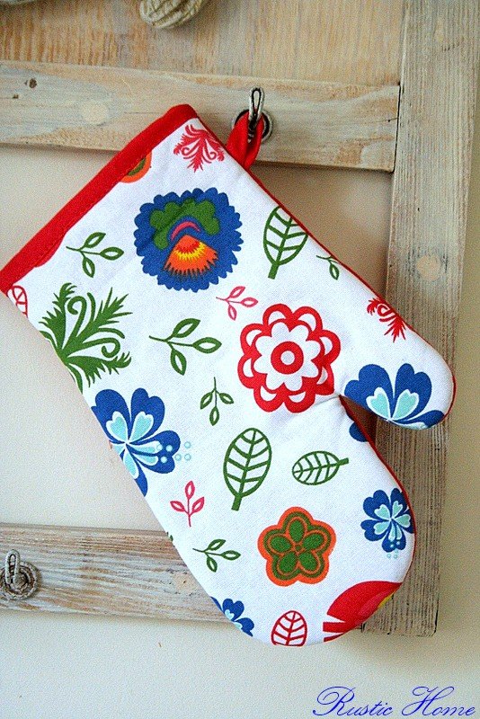 Bawełniana kuchenna rękawica w ludowe wzory. Idealna do wnętrz w stylu country...