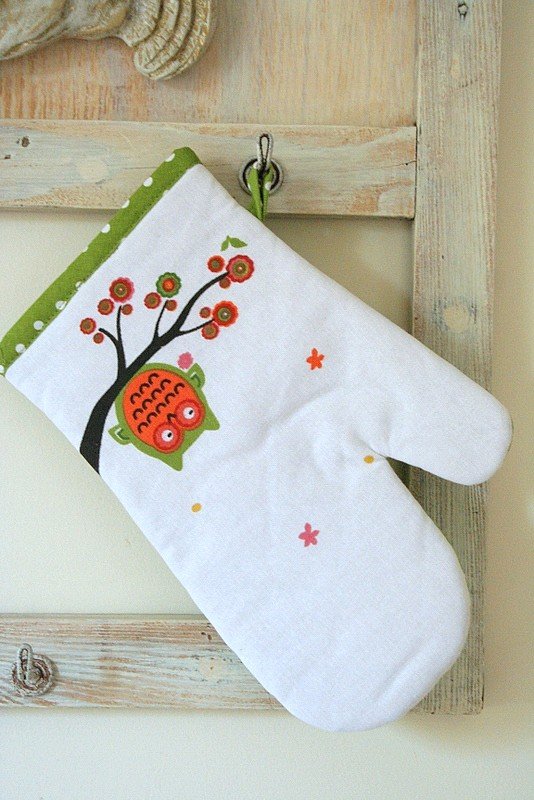 Bawełniana kuchenna rękawica z sympatyczną sówką. Świetny dodatek do kuchni:)