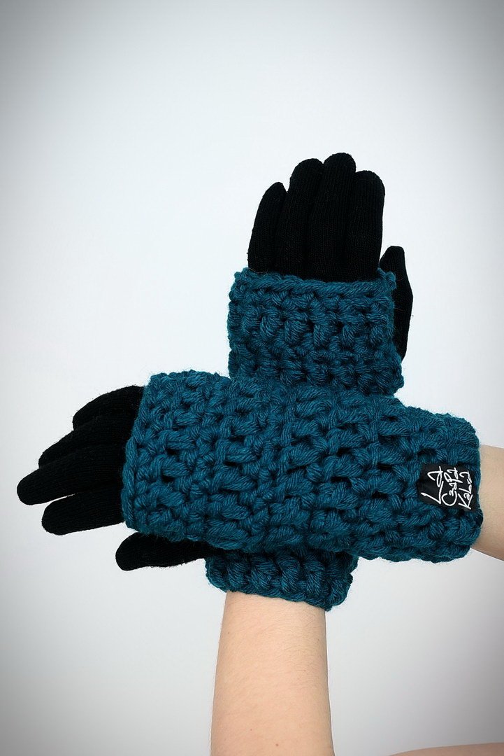 Mitenki ażurowe turkus