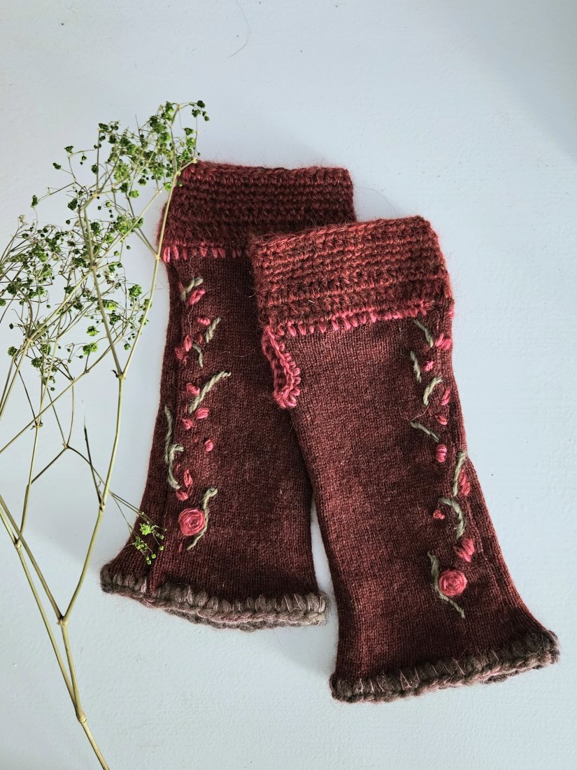 Mitenki, ocieplacze na dłonie, modny i wygodny dodatek do stylizacji, ręcznie szyte i dziergane nie tylko na jesień czy zimę, to również przedłużenie rękawów w chłodne letnie wieczory i ranki. Rozmiar L-XL,